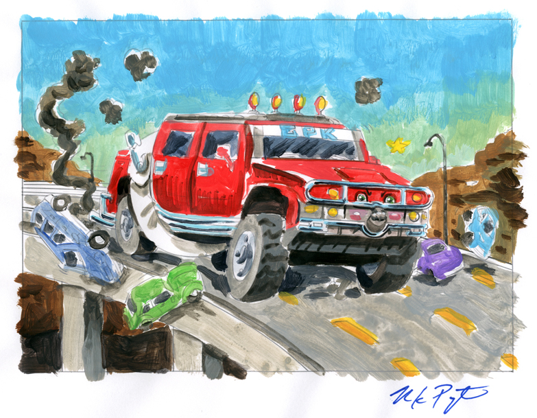 Original 5 x 7 inch painting used in the process to create a card for Topps' Garbage Pail Kids 2016 Apple Pie Set. Centered on a piece of 8.5 x 11 copy paper.