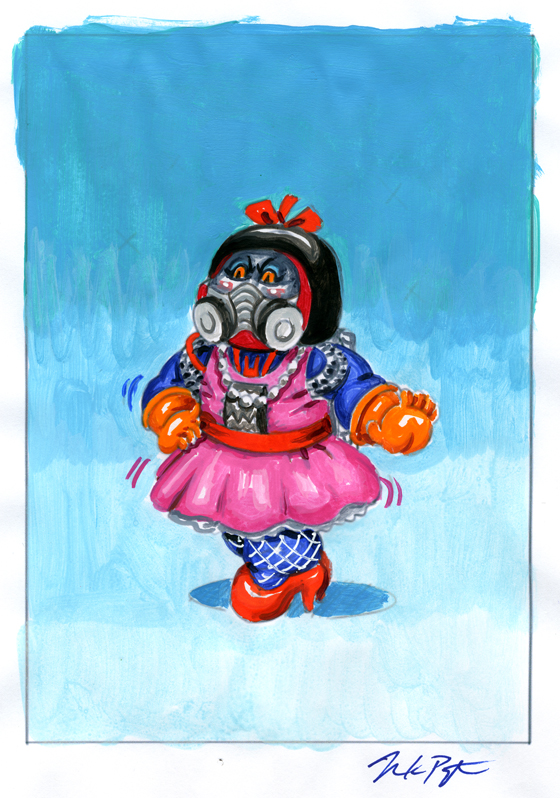 Original 5 x 7 inch painting used in the process to create a custom Disasters of the Universe painting. Centered on a piece of 8.5 x 11 copy paper.