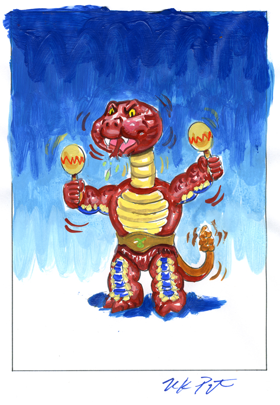 Original 5 x 7 inch painting used in the process to create a custom Disasters of the Universe painting. Centered on a piece of 8.5 x 11 copy paper.