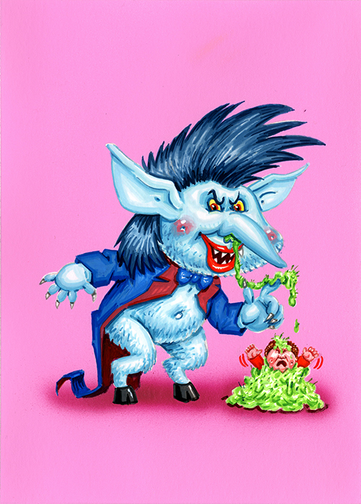 Original 5 x 7 inch custom Slop Culture Kids painting.